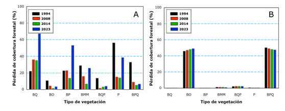 Cuadro 4. Comparativo de pérdida de cobertura forestal en la RBMM.