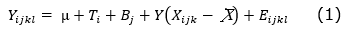 El modelo estadístico (Ecuación 1) empleado fue el siguiente: