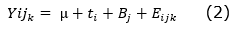 El modelo estadístico (Ecuación 2) empleado fue el siguiente: