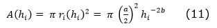 Por lo tanto, el área transversal en función de la altura se expresa como: