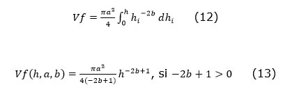 Al integrar el área transversal A(hi) desde hi=0 hasta hi=h se obtuvo la ecuación del volumen del fuste en función de la altura (Ecuación 12) y los valores a y b(Ecuación 13):