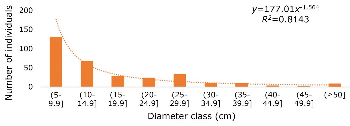 Figure 2. Number of individuals according to diameter (cm).