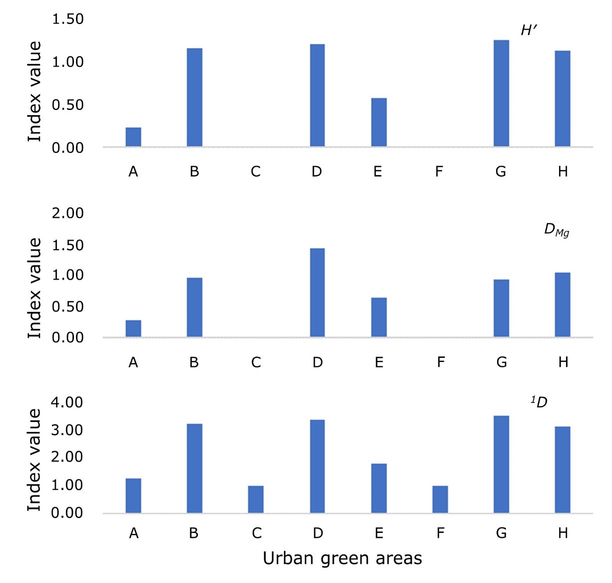 H′ = Shannon-Wiener Index; DMg = Margalef Index; 1D = Number of key species.