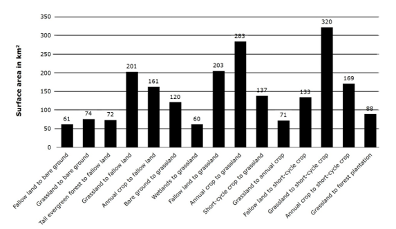 Figure 4. Main transitions in land use changes in the 2000-2019 period.