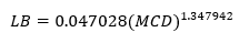 LB = Leaf biomass (g); MCD = Mean crown diameter (cm); H = Total height (cm); β0..., βn = Coefficients of regression. Source: Segura and Andrade (2008).
