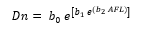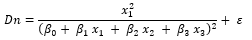 Dn = Diámetro normal; β0, β1, β2, β3 y β4 = Parámetros del modelo; x1, x2 y x3 = Variables predictoras; ε = Error aleatorio.