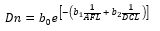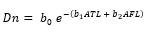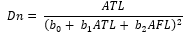 Dn = Diámetro normal; ATL = Altura total LiDAR; AFL = Altura de fuste LiDAR; DCL = Diámetro de copa LiDAR; b0, b1, b2, b3 y b4 = Estimadores.