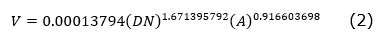 Con los datos de diámetro normal (DN) y altura (A) de 2023 se calculó el volumen (V) de los árboles mediante la ecuación de Schumacher y Hall (Muñoz-Flores et al., 2012):