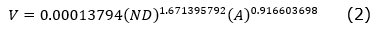 Using the normal diameter (ND) and height (A) data from 2023, the volume (V) of the trees was obtained using the Schumacher and Hall Equation (Muñoz-Flores et al., 2012):
