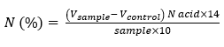Vcontrol = Volume of sulfuric acid used to titrate the blank