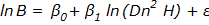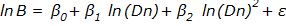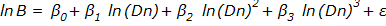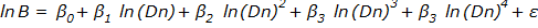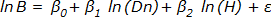 ln = Logaritmo natural; B = Biomasa (kg); , ….. , = Parámetros de regresión; Dn = Diámetro normal (cm); H = Altura total (m).