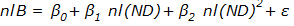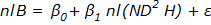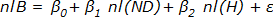 nl = Natural logarithm; B = Biomass (kg); , ….. , = Regression parameters; ND = Normal diameter (cm); H = Total height (m).