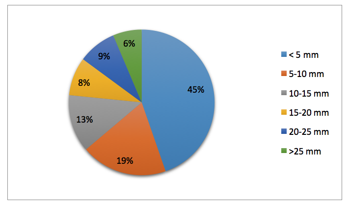 Figure 3. Percentage of rainfall volume ranges recorded during the study period.