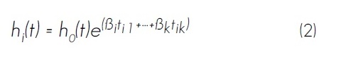 Donde hi(t) es el riesgo de muerte de un individuo i a un tiempo t, el cual es el producto de la función de riesgo (h0) de referencia no especificada y una función exponencial de k covariables (Allison, 1995).