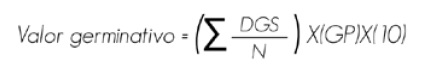 GP= x Porcentaje de germinación al final de la prueba y 10 es una constante