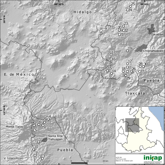 10 | Santa Rita Tlahuapan | 19°17’11.0” | 98°38’50” | 3246 | Conservación | Conservation |