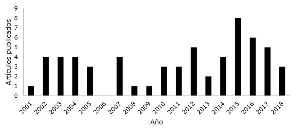 Figure 1. Published articles in scientific journals about plant quality of Mexican pines.