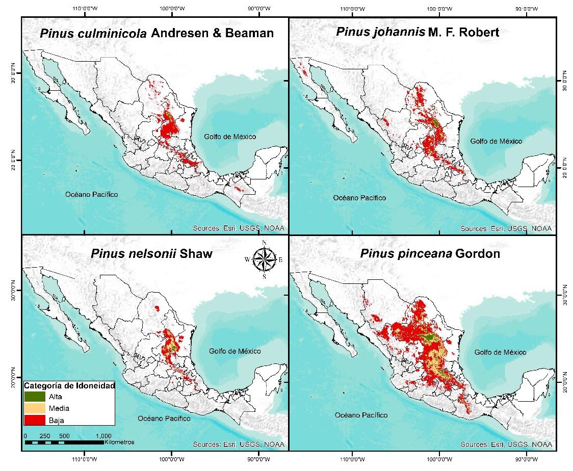 México es considerado como un centro secundario de diversificación del género Pinus, con 49 de las 120 especies identificadas en el mundo; de ellas, 22 son endémicas, de las cuales 10 corresponden a pinos piñoneros (Gernandt y Pérez, 2014), y se esperaría que los efectos del clima limiten aún más su distribución.