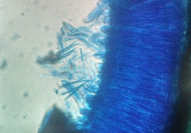 Left: Chlorotic stain; Right: Structure of the septate and flagellated conidia without mycelium.