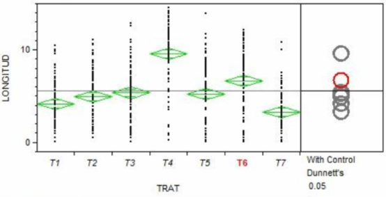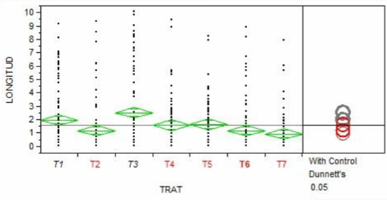 LONGITUD = Damage length (cm), TRAT = Treatments.