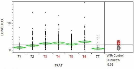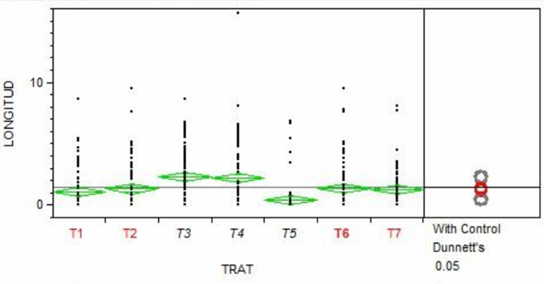 LONGITUD= Damage length (cm); TRAT = Treatments.