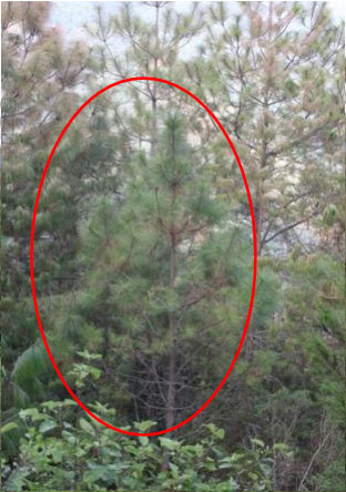 Figure 7. Pine treated with Propiconazole + Biological enhancer of site 2, during the first sampling (left) and last (right).