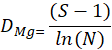 El índice de riqueza de Margalef (DMg), que determina la biodiversidad de una comunidad con base en la distribución numérica de los individuos de las diferentes especies, en función del número total de individuos existentes en la muestra analizada. Combina el número de especies (S) y el número de individuos (N) (Magurran, 2004).