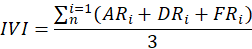 El índice de valor de importancia (IVI) se definió mediante la ecuación (Whittaker, 1972; Moreno, 2001):