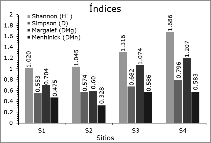 El uso de índices de diversidad que ponderan la riqueza y la abundancia de especies proporcionan una validez científica para establecer criterios de conservación, ya que estas son con frecuencia utilizadas como indicadores ambientales de la salud del ecosistema (Magurran, 1989). Esos índices se han aplicado para orientar las acciones relacionadas con la biodiversidad de los hábitats, en virtud de que expresan en valores numéricos la información de censos o muestras que contribuyen a fundamentar la toma de decisiones en el manejo forestal (Lübbers, 1997).