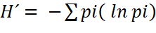 The description and comparison of the alpha diversity of the plantations and the RAs was carried out with the species richness indexes (S) and the Shannon-Wiener diversity index (). The species richness index was defined as the total number of species present within each plantation and adjacent stand, while 'was estimated from the sum of the multiplications of the proportions of the abundances of each species () by the logarithm natural ( of these proportions:
