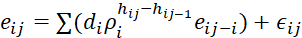 La autocorrelación entre los errores de los mejores modelos se corrigió aplicando el modelo autorregresivo CAR(X) desarrollado por Zimmerman et al. (2001). Este modelo permite ajustar los parámetros de cada uno de los modelos de crecimiento con los del modelo autorregresivo de manera conjunta. La estructura del modelo autorregresivo es: