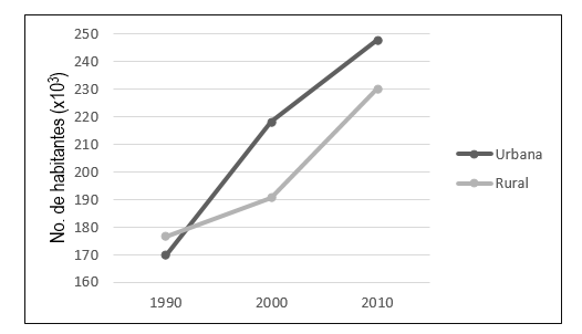 Fuente: Censos de Población y Vivienda de INEGI (1990, 2000 y 2010).
