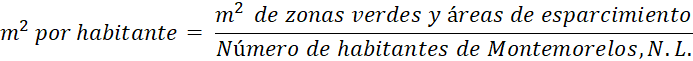 En el presente estudio, el área verde por habitante (0.87 m2) fue inferior tanto a la observada por Mejía y Gómez (2015) para Tepic, Nayarit (1.2 m2), como a la calculada por Alanís-Flores (2005) para Monterrey (4.6 m2). Todos estos valores, incluso el de este estudio, son inferiores a la dotación de áreas verdes urbanas sugeridas por diversos autores, lo que supone un déficit en el municipio Montemorelos y en otras ciudades de México (Palomo, 2003; Wang, 2009; Molinar, 2015).