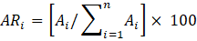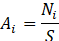 Ai = Absolute abundance ARi = Relative abundance per species Ni = Number of individuals of the i species S = Sampling area (ha) | |