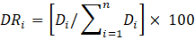 Di = Absolute dominance DRi = Relative dominance of the i species in regard to total dominance Gi = Basimetric area of the i species S = Area (ha). | |