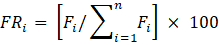 Fi = Absolute frequency FRi = Relative frequency of the i species in regard to total frequency Pi = Number of sites in which the i species is present NS = Total sampling site number | |