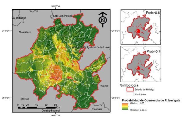 Los resultados obtenidos en este estudio permiten concluir que P. laevigata puede establecerse idóneamente en 83 437 ha del estado de Hidalgo. La mayor parte de estas extensiones se localizan en la región central del estado.