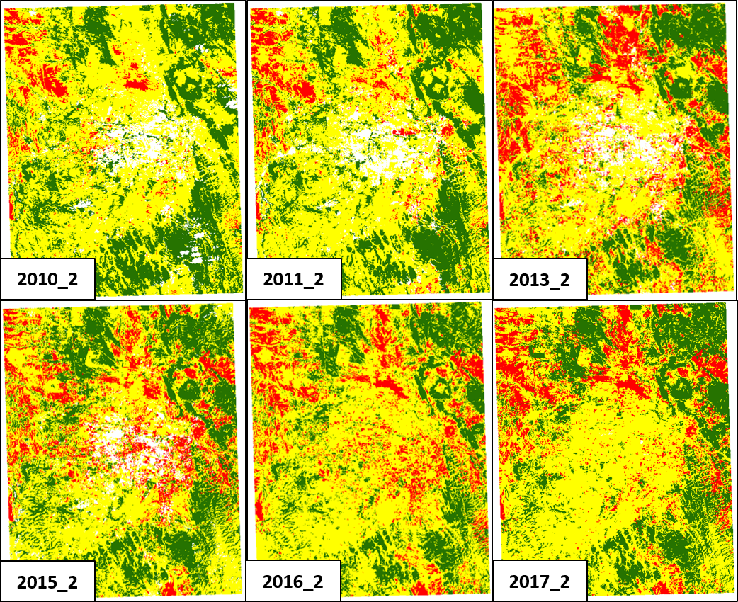 Figure 4. Example of time-space variation of land covers in evaluation area 2 (EA-2).