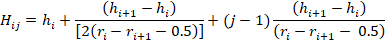 = Altura total estimada en la rodaja , correspondiente a j anillos de crecimiento