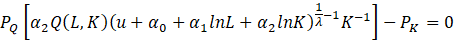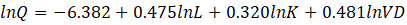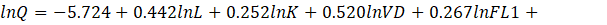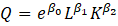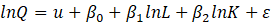 Se utilizó la función de producción (Q) de tipo Cobb-Douglas con dos factores de la producción: capital (K) y mano de obra (L) dada por el modelo: