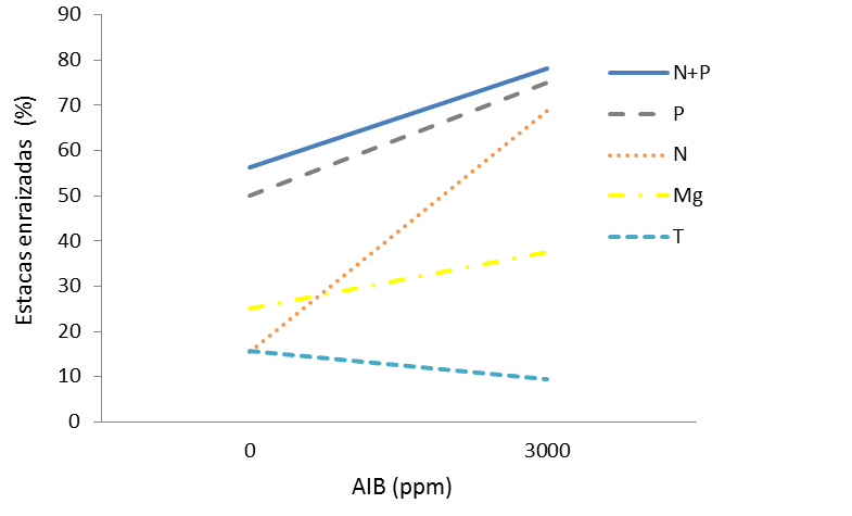 This interaction implies that rooting capacity depends not only on the exogenous application of IBA, but also on the quality and vigor of the cutting; therefore, the nutritional status of the cutting is of paramount importance in the process of rhizogenesis for the hybrid in question. Nutrient mobilization within the cutting is known to be limited during the root initiation phase, but not during growth and development.