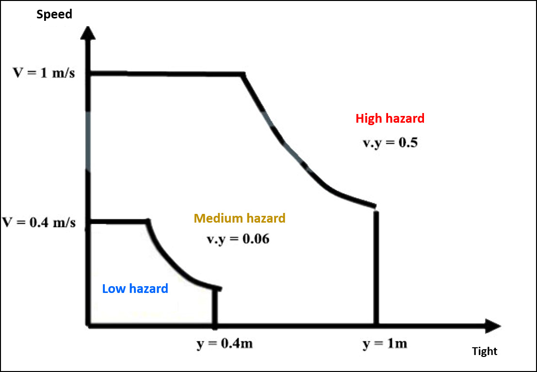 Figure 3. Risk criteria based on water flow and velocity (Iber, 2019).