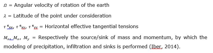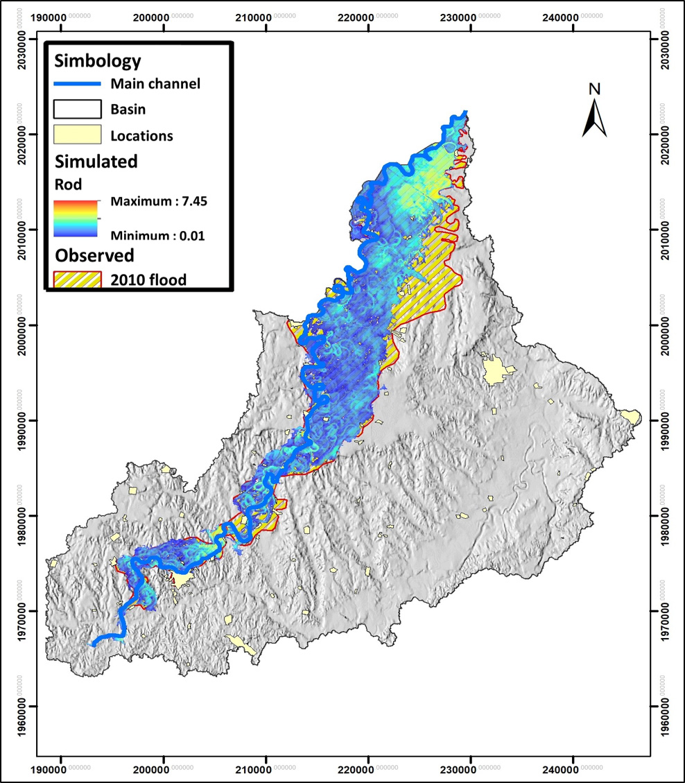 The hydraulic modeling of the sub-basin was carried out with the support of Iber software 2.5 version. In the hydrodynamic module, which forms the basis of Iber, the two-dimensional depth-averaged shallow-water equations are solved (St. Venant 2D equations) (Bladé et al., 2014; Cea and Bladé, 2015).