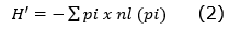 Se estimó la diversidad alfa (α), definida como la diversidad de especies a nivel local, con el Índice de Shannon-Wiener (H’). Se complementó con el Índice de Dominancia de Simpson (λ) y el Índice de Equidad de Pielou (J´), calculados con las siguientes ecuaciones (Moreno, 2001):
