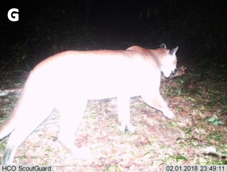 Con base en la IUCN, las poblaciones de Cuniculus paca Linnaeus, 1766, Leopardus pardalis Linnaeus, 1758, Puma concolor Linnaeus, 1771, Leopardus wiedii, Herpailurus yagouaroundi È. Geoffroy Saint-Hilaire, 1803, Potos flavus Schreber, 1774, Nasua narica Linnaeus, 1766 y Conepatus leuconotus Lichtenstein, 1832están decreciendo, mientras que las poblaciones de las otras especies identificadas están estables o en aumento. En la Figura 3 se muestra la evidencia fotográfica de los mamíferos medianos y grandes registrados en el SELM.