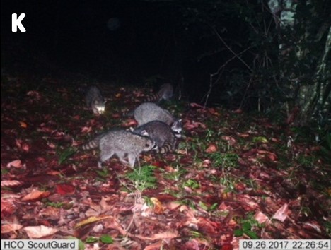 Figura 3. Mamíferos registrados mediante fototrampeo en el Sitio Experimental Las Margaritas, Sierra Nororiental del estado de Puebla. La colección de fotografías está bajo el resguardo del INIFAP, y puede consultarse previa solicitud a la Dra. Martha Elena Fuentes López.