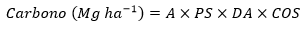 El almacenamiento de carbono en el suelo se calculó con la siguiente fórmula (Acosta-Mireles et al., 2009):