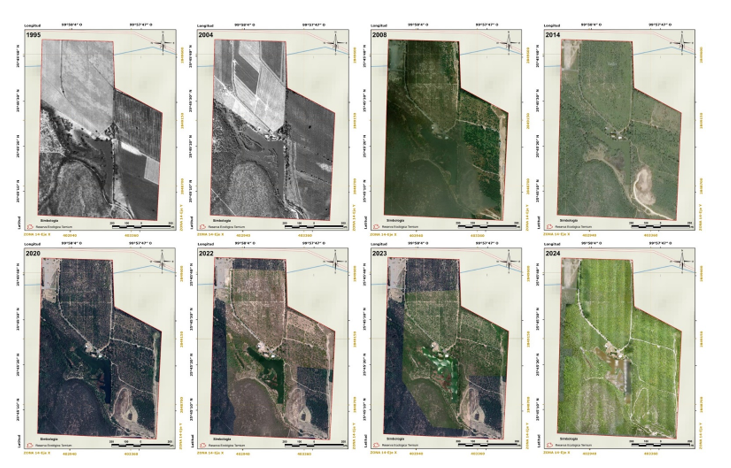 Figura 2. Ortomosaicos del área de conservación ubicada en el municipio Pesquería, Nuevo León, México (1995-2024).