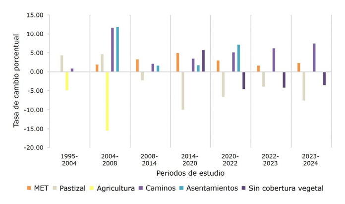 Figura 6. Tasa de cambio de la superficie evaluada durante el periodo 1995 a 2024.