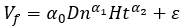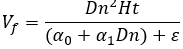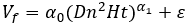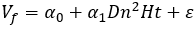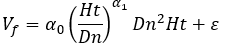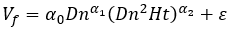 Vf = Volumen del fuste total (m3); Dn = Diámetro normal (cm); Ht = Altura total (m); ai = Parámetros a estimar; e = Error del modelo.